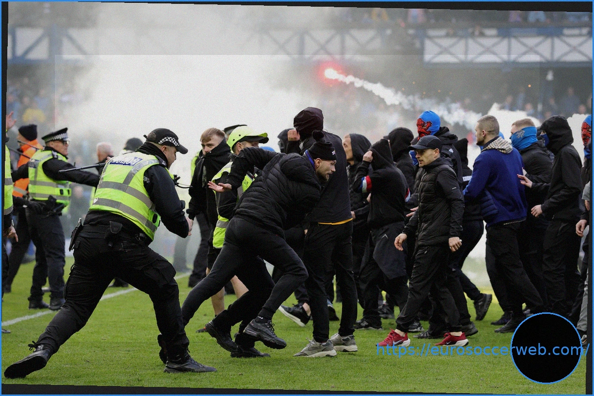 Nine people have been arrested in Glasgow following altercations. Supporters from both teams clashed directly on the pitch at Ibrox, the legendary stadium of the Glasgow Rangers.